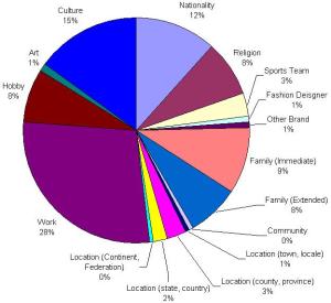 This is something I’d like to begin work on – collecting twitter data and measuring state legitimacy. But first, I need to develop a framework for measuring legitimacy, a kind of index. What are the components that go into measuring state legitimacy? I think also we need to measure some alternate identity factors – and I’ll have to look to psychology sources to model that. For each person, we could build a kind of personal identity pie (like on the right), looking at the various elements of personal identity. Now, personal identity is not the exclusive determinant of internal state legitimacy? I may not identify with the state, but I may engage with the state – like I spoke about above – taxes, civic society, and that in turn confers a degree of legitimacy. Is that it? In that instance, we could see Internal State Legitimacy as being the sum of the legitimacy expressed by personal identity plus the legitimacy expressed by state engagement (and therefore implicit recognition and acknowledgement).